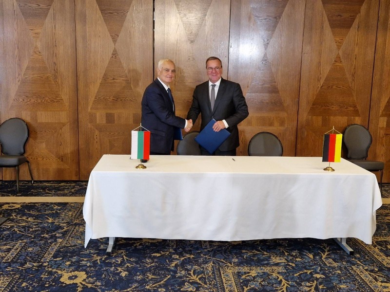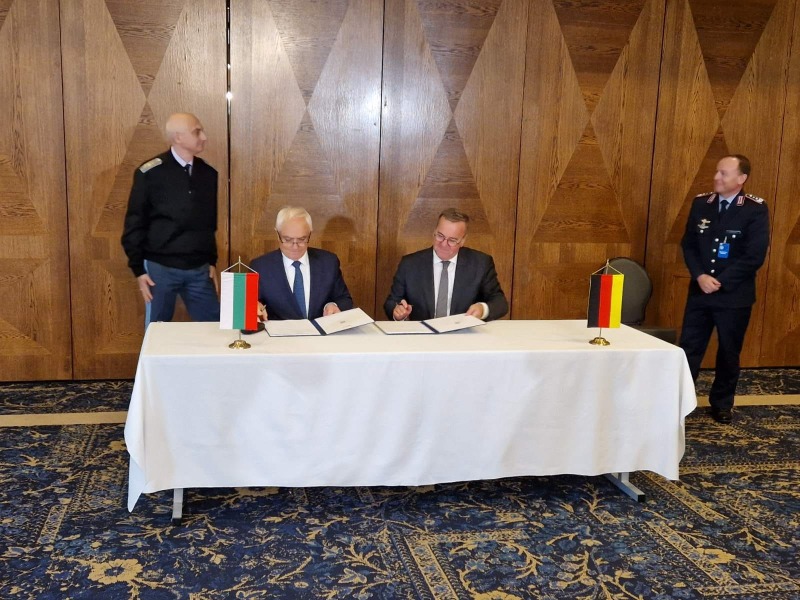 Министър Атанас Запрянов и министър Борис Писториус подписаха „Програмно споразумение между Федералното Министерство на отбраната на Федерална република Германия и Министерството на отбраната на Република България за съвместната покупка на IRIS-T SLM системи, съгласно Меморандума за разбирателство относно съвместното закупуване на наземни системи за противовъздушна отбрана в рамките на инициативата „Щит на европейското небе“.