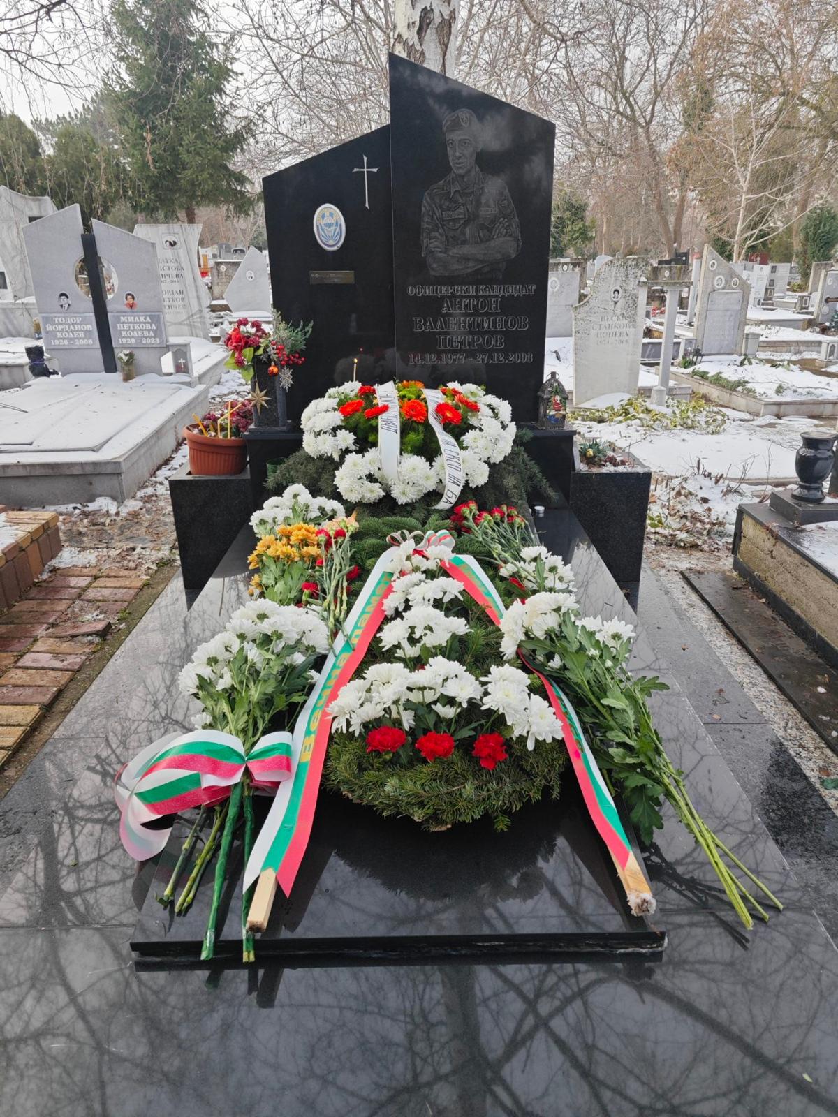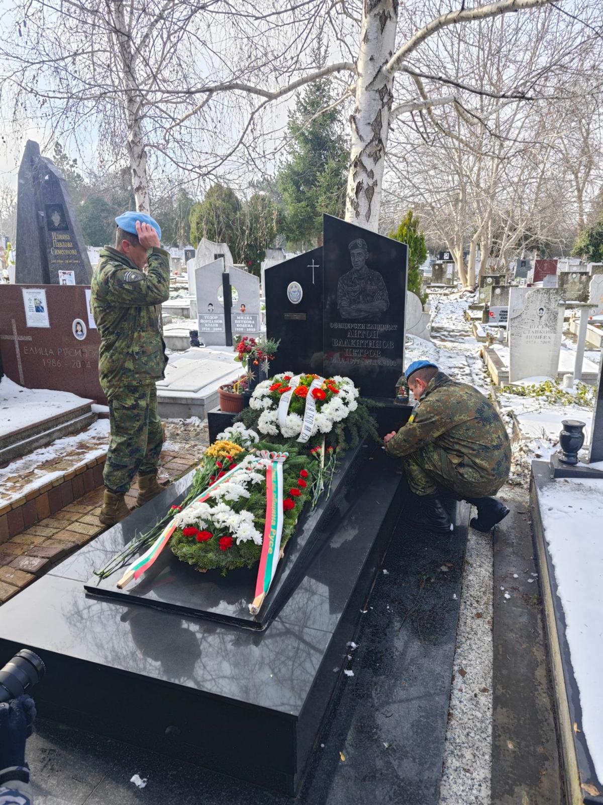 В Русе военнослужещи от Съвместното командване на специалните операции (СКСО) почетоха паметта на офицерски кандидат Антон Петров, загинал преди 22 години при нападението над база „Индия“ в Кербала. Пред гроба му положиха венци и цветя и се поклониха заместник-командирът на СКСО полковник Иван Райков, роднини, приятели и бойни другари на загиналия.