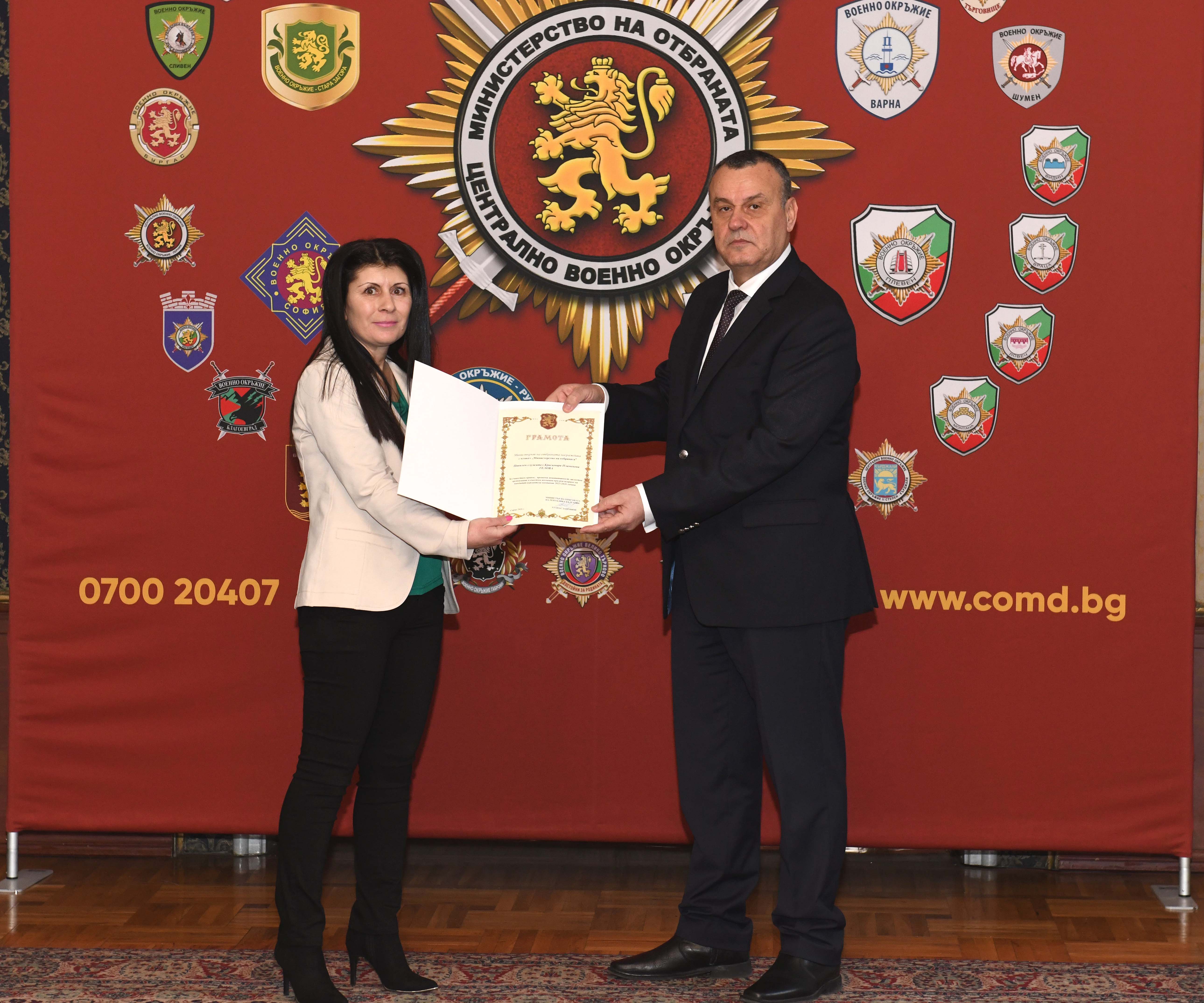 Република БългарияЗаместник-министърът на отбраната Радостин Илиев връчи награди на военнослужещи и цивилни служители от Централното военно окръжие (ЦВО) и военните окръжия в страната днес, 10 февруари. Тържествената церемония се състоя в Централния военен клуб, където днес и утре се провежда годишният анализ за дейността и състоянието на войсковия ред и дисциплината в Централното военно окръжие и военните окръжия през 2025 г. Наградите се връчват със заповед на министъра на отбраната за постигнати високи резултати при реализиране на кандидат-курсантската кампания.